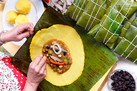 Also, if you go there during Christmas, you can try hallaca. It's a traditional dish in Christmas. And it has all the four types of meat. It has pork, it has chicken, beef, fish, plus vegetables. It's very tasty. I know it sounds a little bit like oh, all together, but it's very tasty but you get a lot of weight after Christmas.