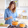 A stove is used to cook food. Usually you can cook on an electric stove or on a gas stove with fire. Notice the following: